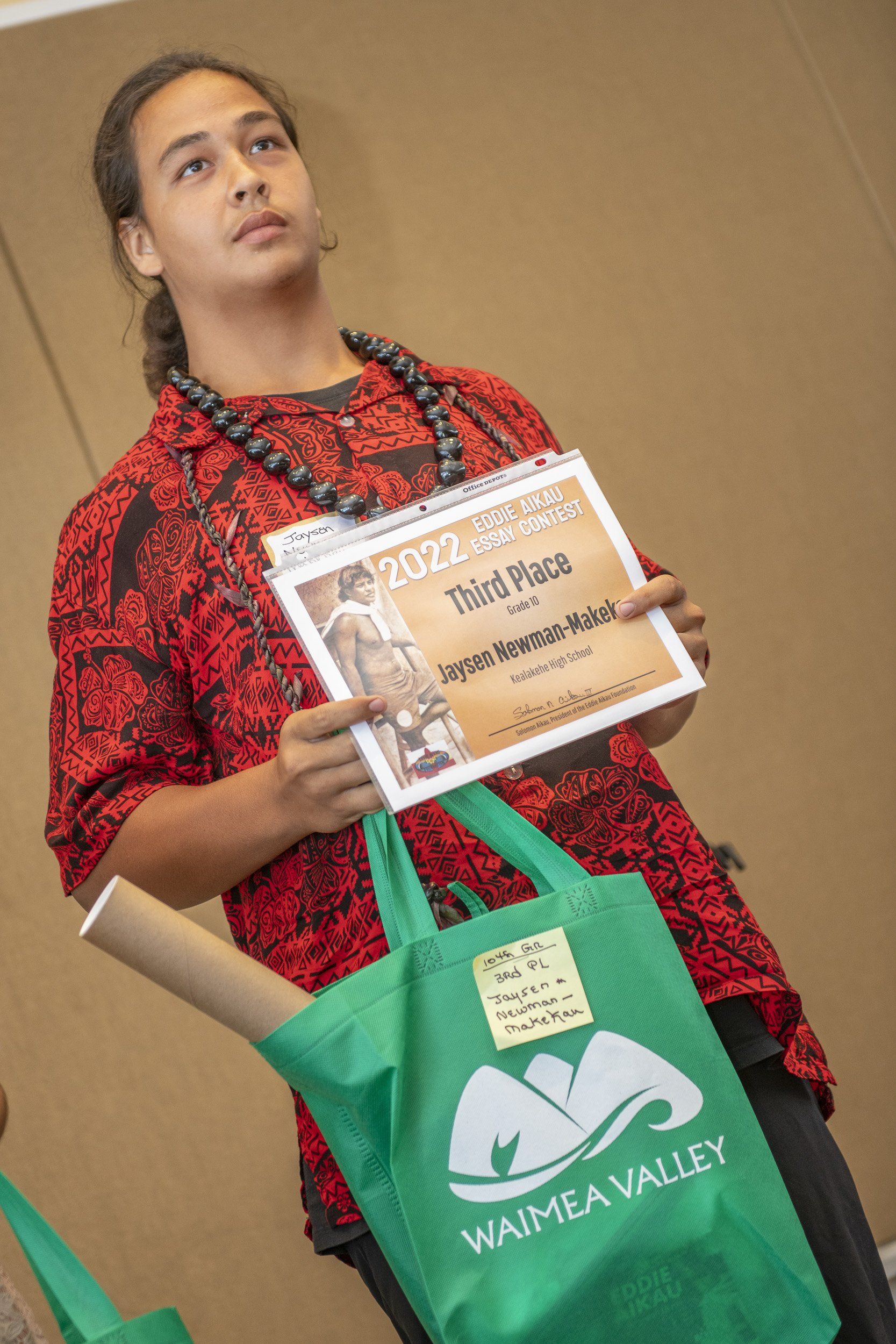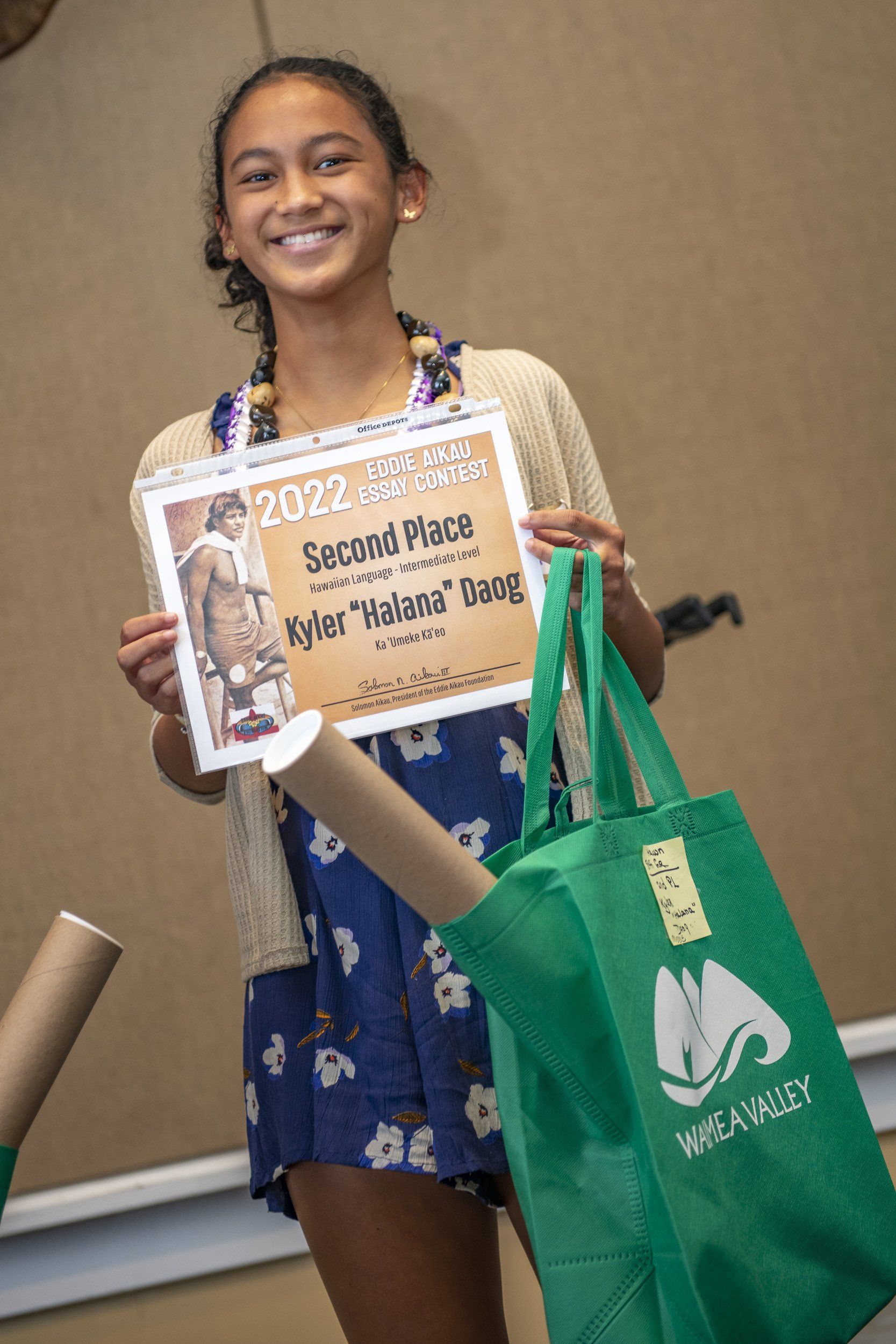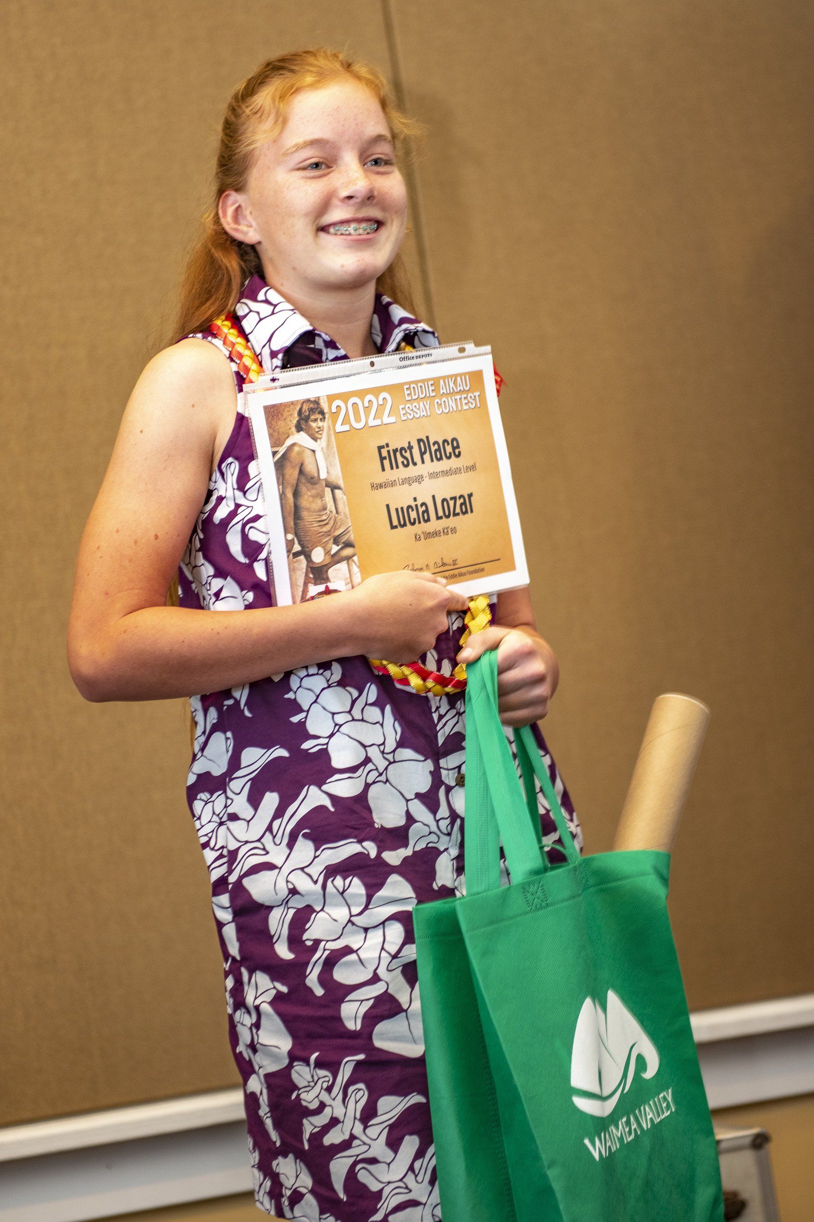 We have been conducting this competition since 2006 and we are the only essay contest in the State that has an English and Hawaiian language division. This year we had an amazing 384 English essays submitted for judging and 49 essays written in Hawaiian.